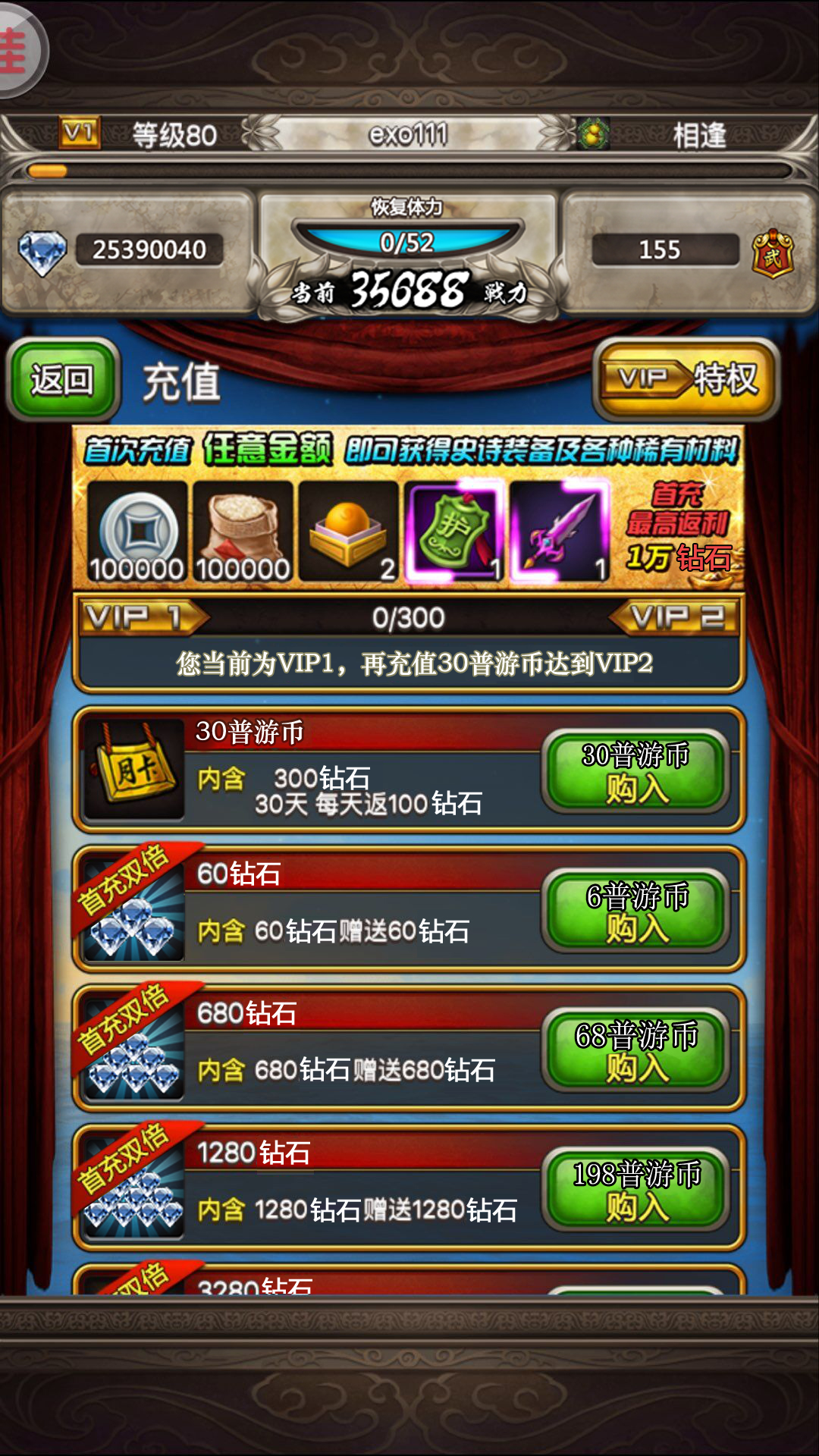 选择对应档位,支付成功后完成充值,获得对应钻石